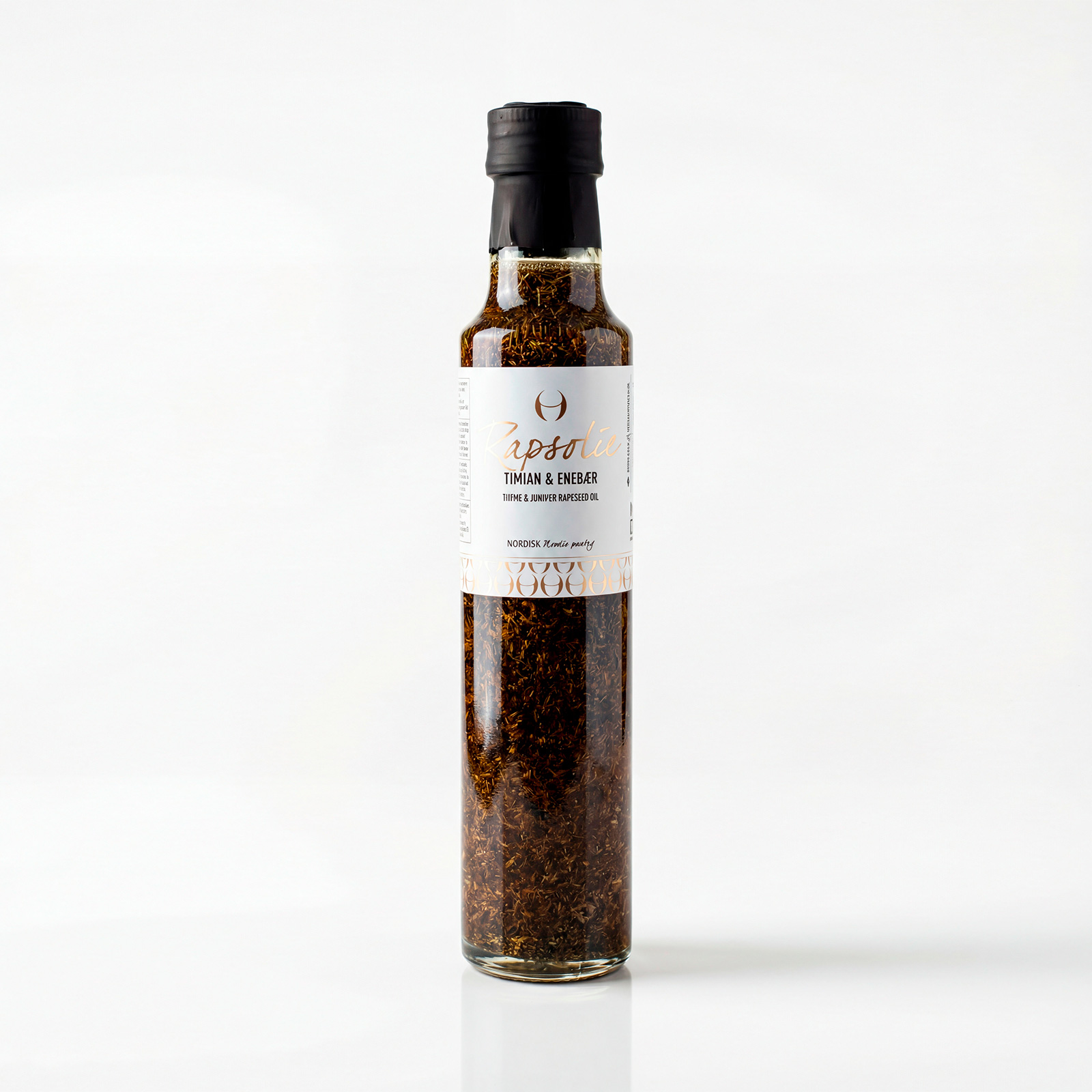 Rapsolie er god til krydring af and, vildt og oksekød. brug den også som krydderi i supper og kartoffelretter samt som dip til milde oste. Den vildtvoksende timian og de grønne enebær vokser side om side på de nordjyske heder.